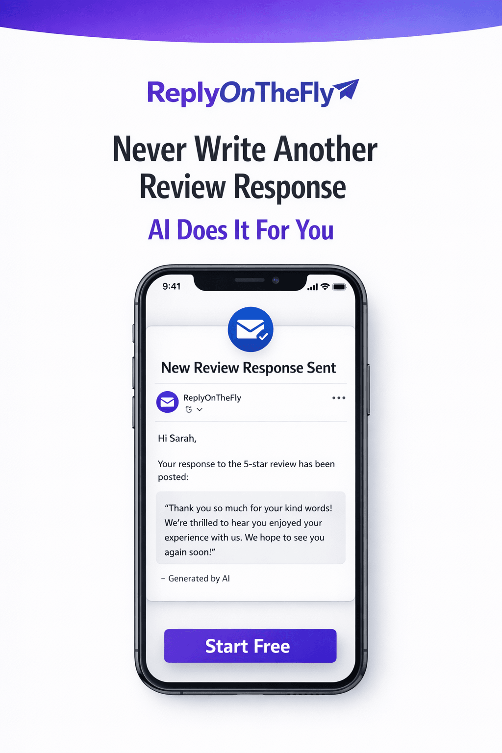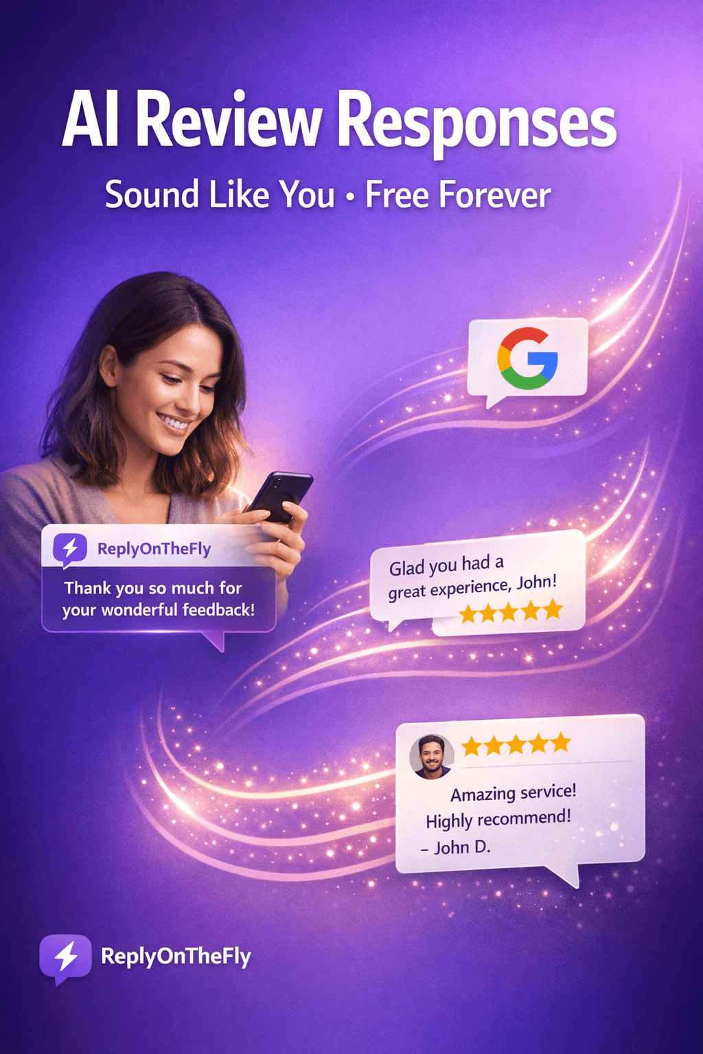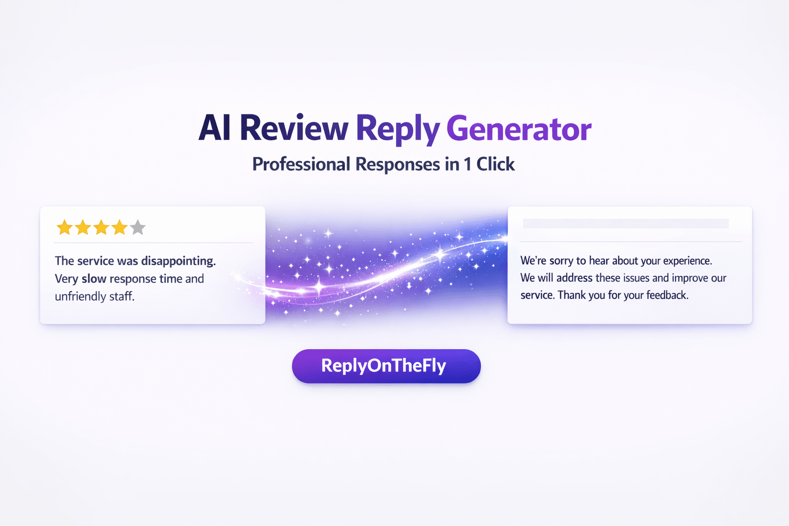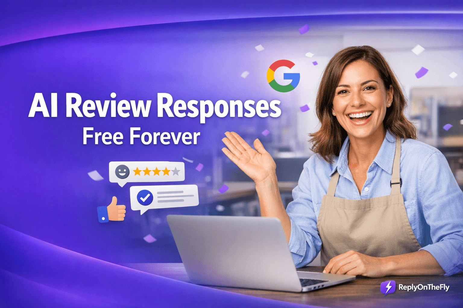 Let AI handle it. ReplyOnTheFly generates personalized responses to your Google reviews in seconds. Free forever - no credit card required...