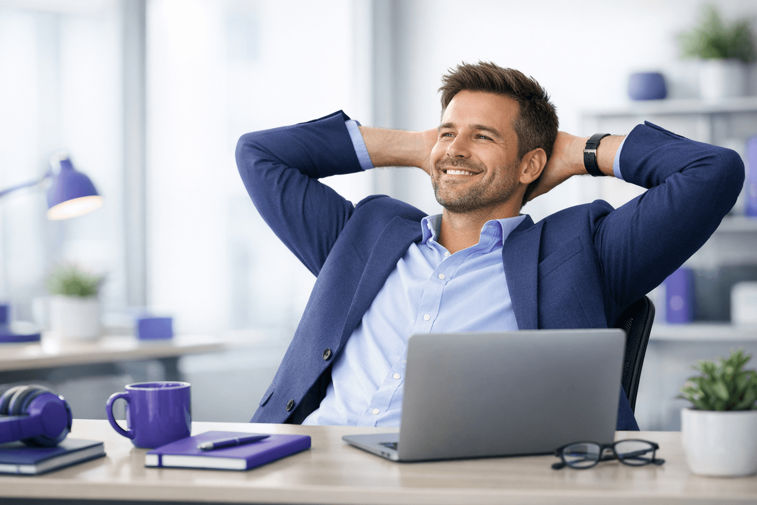 Relaxed Owner at Laptop